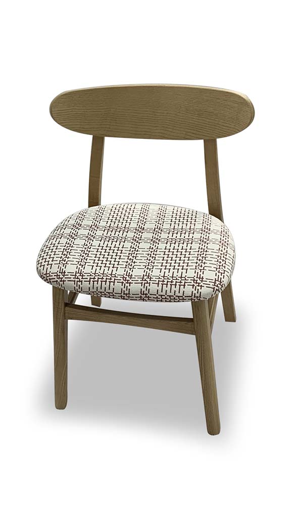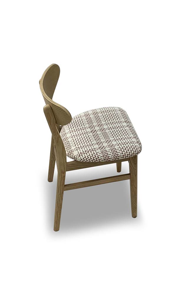 Cada aspecto de la silla Bravo está pensado para ofrecer una experiencia única. Su asiento tapizado brinda una sensación suave y acogedora. Puedes escoger entre una amplia gama de colores y texturas, lo que te permite personalizar la silla para que combine con la decoración de tu hogar. Esta variedad en la tapicería no solo mejora la apariencia, sino que también añade comodidad para largas conversaciones o momentos de relajación en la cocina. El respaldo ovalado es una característica clave del diseño de la silla Bravo. Aunque compacto, ofrece el soporte necesario para una postura cómoda. Su diseño no ocupa mucho espacio visual, lo que es perfecto para áreas más pequeñas o para quienes prefieren un estilo limpio y despejado. Además, puedes dejar la madera del respaldo al natural para destacar su belleza y textura, o tapizarlo para crear un contraste visual interesante con el asiento. Instalada en el Restaurante Susurro Brunch junto con el estudio de interiorismo Levulevu y Restaurante La Viñuela.