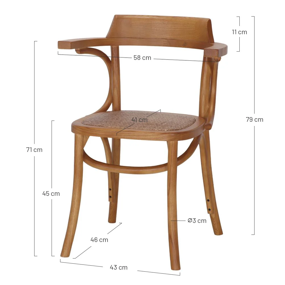 La silla de madera EMATTY  es de estilo Bistró, y tiene un asiento en ratán natural trenzado. Esta silla de madera con acabado en tono roble es ligera, funcional, cómoda y resistente. Es perfecta para combinar con una bonita mesa de comedor, o como silla de escritorio. Su uso es para interior, puedes usarlo tanto en el hogar como en hostelería. como decíamos, es cómoda y con un diseño clásico que no pasa de moda.