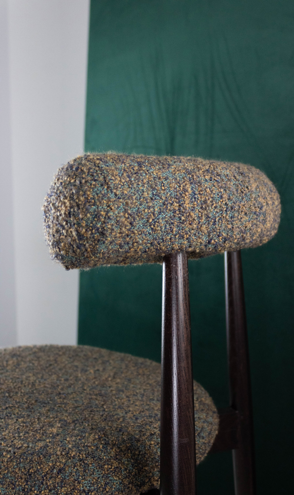 El diseño de la silla está pensado para ofrecer un equilibrio perfecto entre estética y funcionalidad. Su respaldo en forma de rulo no solo aporta un toque distintivo, sino que también mejora la ergonomía, permitiendo un apoyo natural y confortable. La extensión de las patas traseras hasta el respaldo refuerza su estabilidad, asegurando una estructura duradera y de alta calidad. Gracias a su asiento tapizado con goma de alta densidad, proporciona una experiencia de descanso placentera, ideal para largas sobremesas en restaurantes o momentos de relax en el hogar.