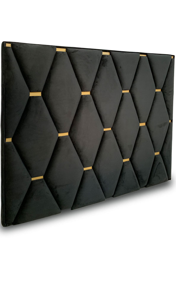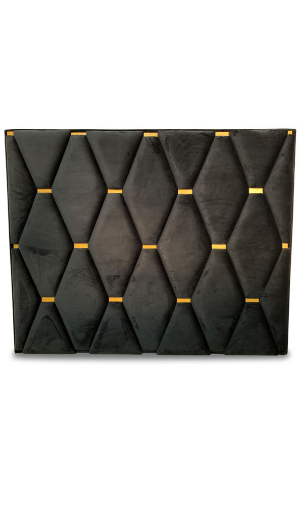 El Cabecero Isabel elegante es una pieza única que aporta elegancia atemporal a cualquier habitación. Su diseño destaca por los plafones en forma de rombos, cuidadosamente elaborados para crear una apariencia moderna y sofisticada. Estos plafones están separados por chapas rectangulares en un tono dorado, que resalta sutilmente y le da un toque de lujo discreto. Este cabecero combina perfectamente formas geométricas con acabados refinados, lo que lo convierte en una pieza ideal para quienes buscan un equilibrio entre estilo y funcionalidad.