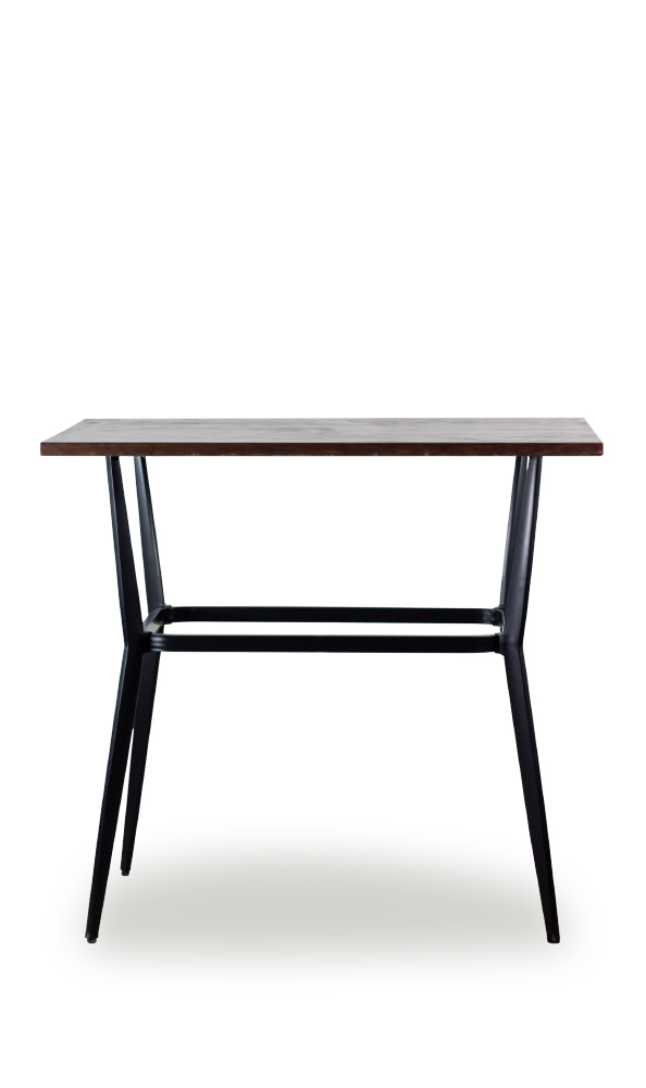 Su estructura está fabricada en hierro macizo de gran resistencia, con un elegante acabado lacado en color negro. Este tratamiento no solo mejora su durabilidad, también aporta una estética industrial sofisticada. Las patas de la mesa alta Marengo se cruzan en el centro con una ligera inclinación hacia dentro. Luego se abren de nuevo hacia fuera, generando una forma arquitectónica muy atractiva. Este diseño permite distribuir el peso de forma eficiente y aporta estabilidad incluso en suelos irregulares.
