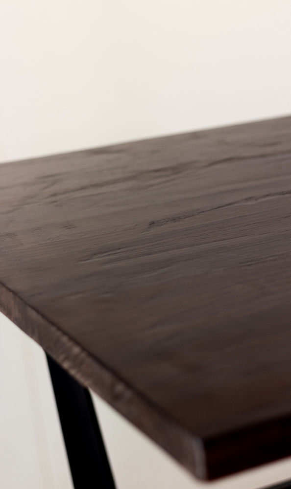 Está disponible en forma rectangular y también puede solicitarse en versión cuadrada. La altura no es modificable, ya que forma parte clave de su diseño y estabilidad. En conjunto, esta mesa ofrece una mezcla ideal de resistencia, diseño original y elegancia. Es perfecta para quienes buscan mobiliario con carácter y funcionalidad.