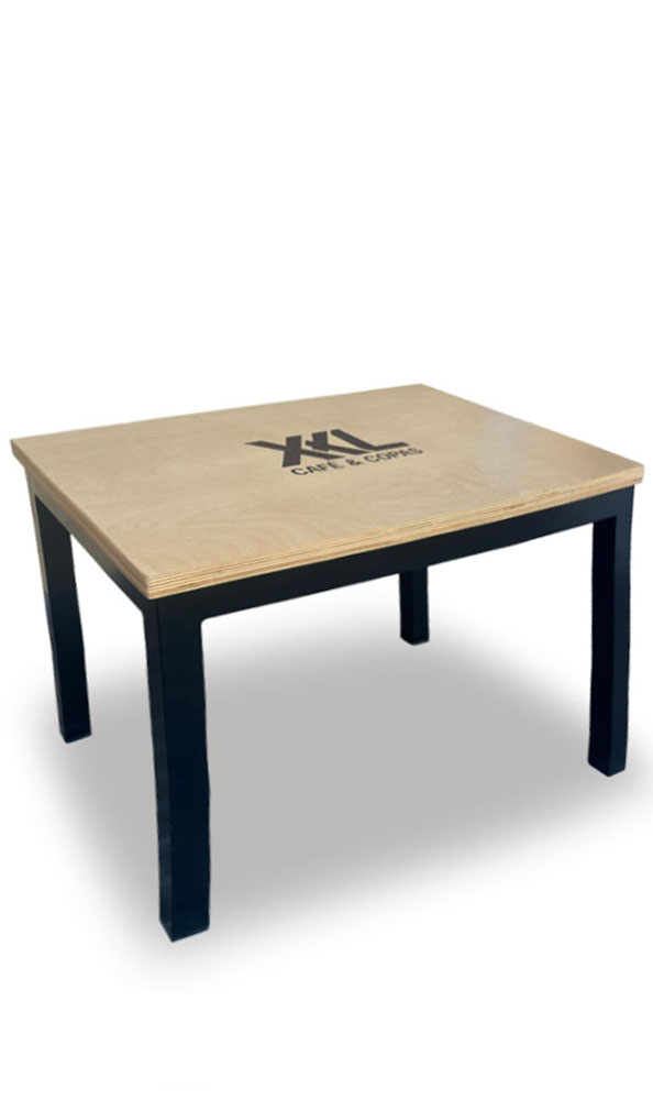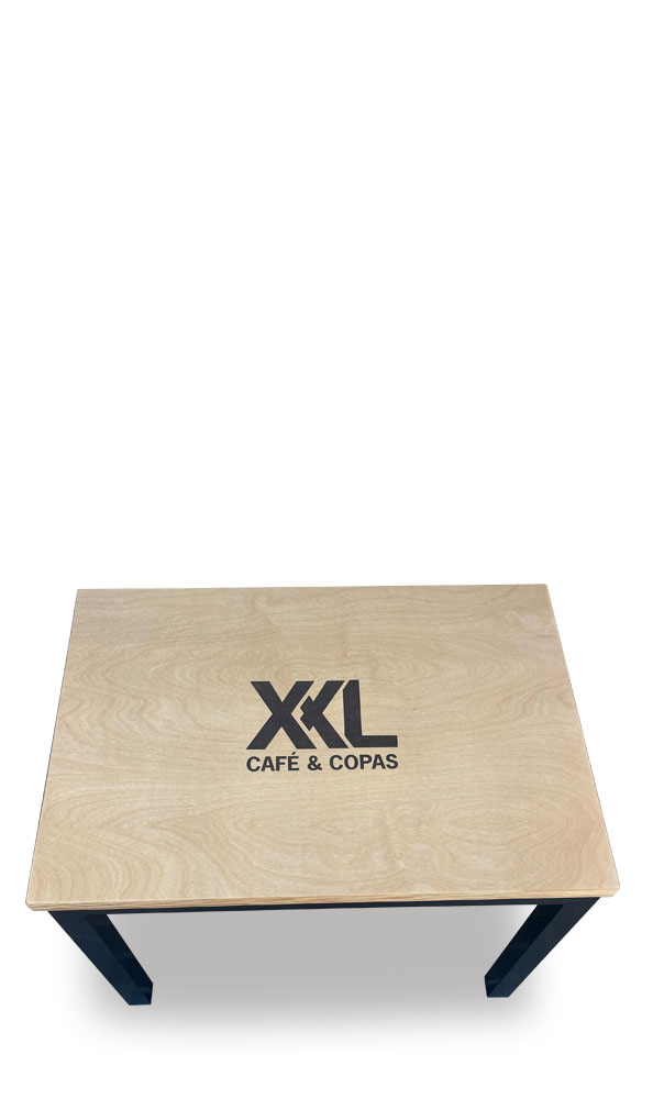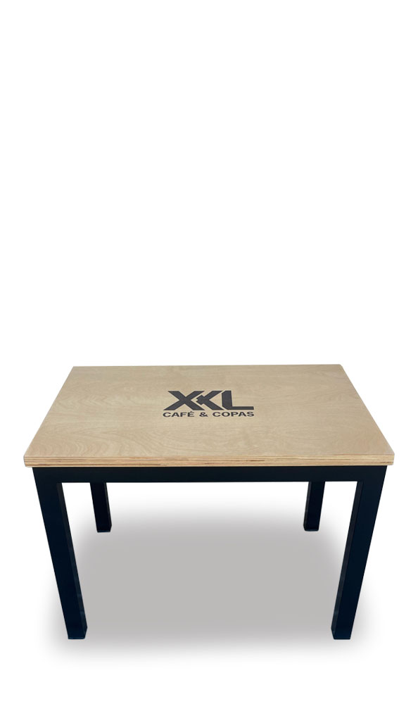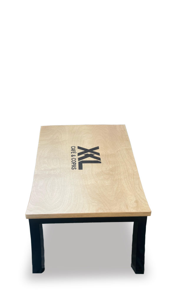La mesa Valley se distingue por su increíble versatilidad. Su formato rectangular y baja altura la convierten en la opción ideal para complementar sofás y sillones. Asimismo, su tapa está disponible en materiales como madera o PVC, ofreciendo opciones variadas para todos los gustos. Para quienes buscan exclusividad, la versión en madera permite grabados personalizados con tecnología láser. De este modo, logos, imágenes o detalles únicos pueden incorporarse fácilmente para crear una pieza exclusiva y distintiva. Además, en el proyecto del chiringuito en Madrid, se optó por una versión en madera con grabados personalizados, logrando una estética única y acorde con la identidad del lugar. Este tipo de personalización es ideal para negocios que desean fortalecer su imagen de marca a través del mobiliario.