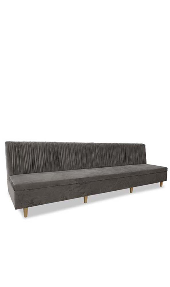 El respaldo de la Bancada Madison Drapeado es su característica más llamativa. En lugar de un respaldo plano y tradicional, este modelo cuenta con un diseño plisado o drapeado que le da un estilo único y atractivo. Este toque de elegancia transforma el aspecto de cualquier establecimiento, haciendo que la pieza se convierta en un elemento central del espacio. El drapeado no solo mejora la apariencia, sino que también aporta una textura interesante que enriquece el diseño interior del lugar.