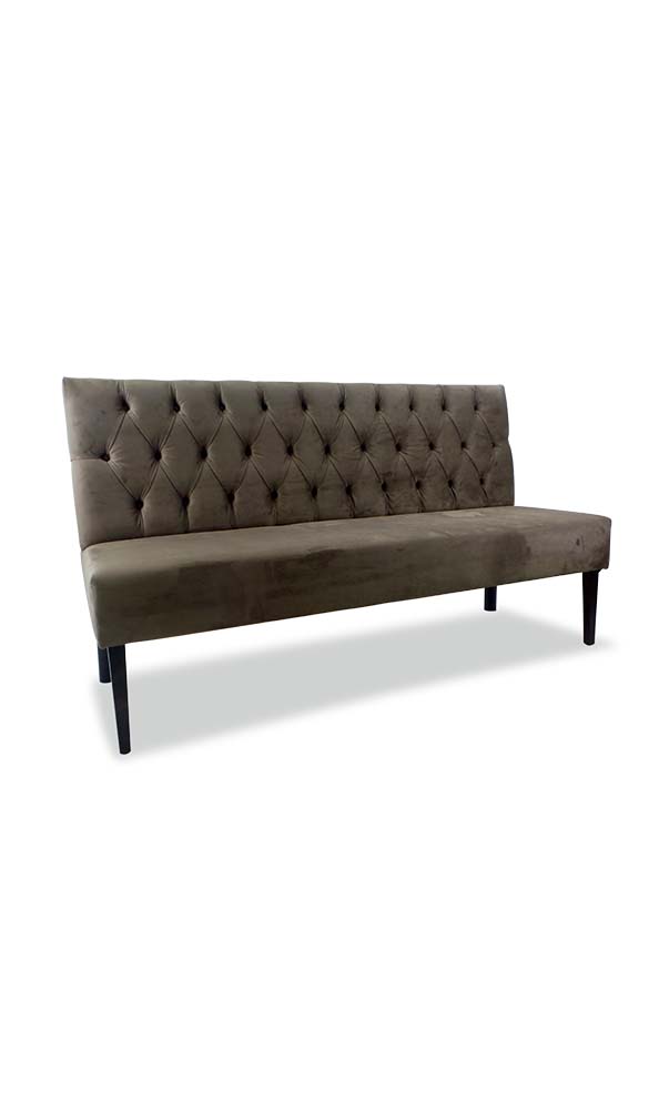 Mobiliario personalizado para hostelería con la bancada Madison capitoné artesanal